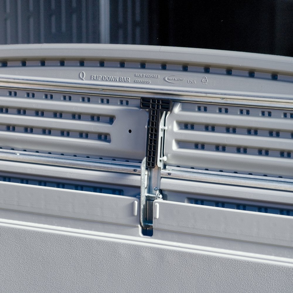 The cleverly designed split front panel opens to create an convenient canopy to create shelter and shade over the bar area, whilst the integrated bar top flips down, producing a spot to sit and socialise with friends and family - transforming the structure from a practical storage shed into a stylish social spot.